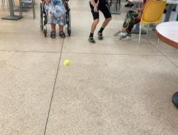 Une fois toutes les deux semaines, une des psychomotriciennes et une des animatrices se réunissent alors afin de proposer des jeux d'adresse et de motricité globale aux résidents.